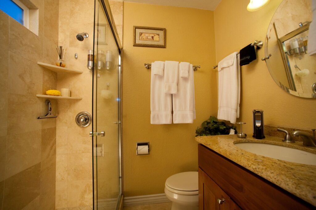 - Private Custom built Travertine/Granite Bathroom with Glass Door Shower