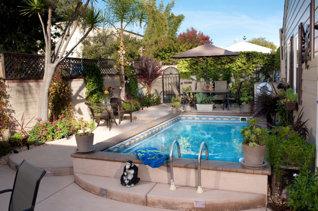Pass the fragrant Garden flowers to enter your secluded Guest Room overlooking the shimmering waters of the Saline Pool.